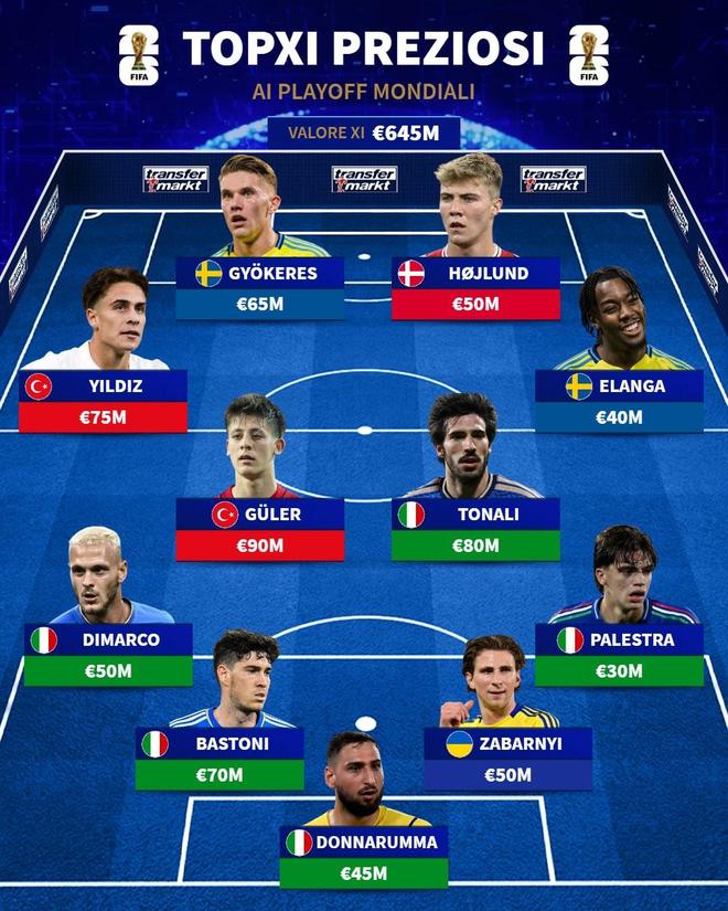 德转列世预赛附加赛最贵11人:居莱尔领衔,意大利五人入选