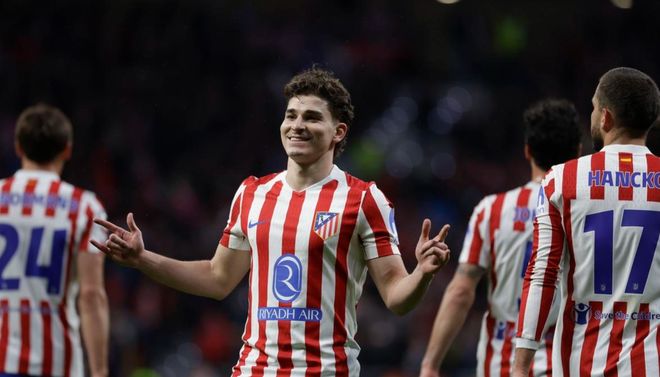 马竞排出了442阵型。格列兹曼和阿尔瓦雷斯搭档双前锋。小西蒙尼、马科斯-略伦特、约翰尼-卡多佐和卢克曼组成4中场。马克-普维尔、勒诺尔芒、汉茨科和鲁杰里4后卫首发出战。奥布拉克担任首发门将。索兰克、加拉格尔和哈维-西蒙斯坐在替补席待命。